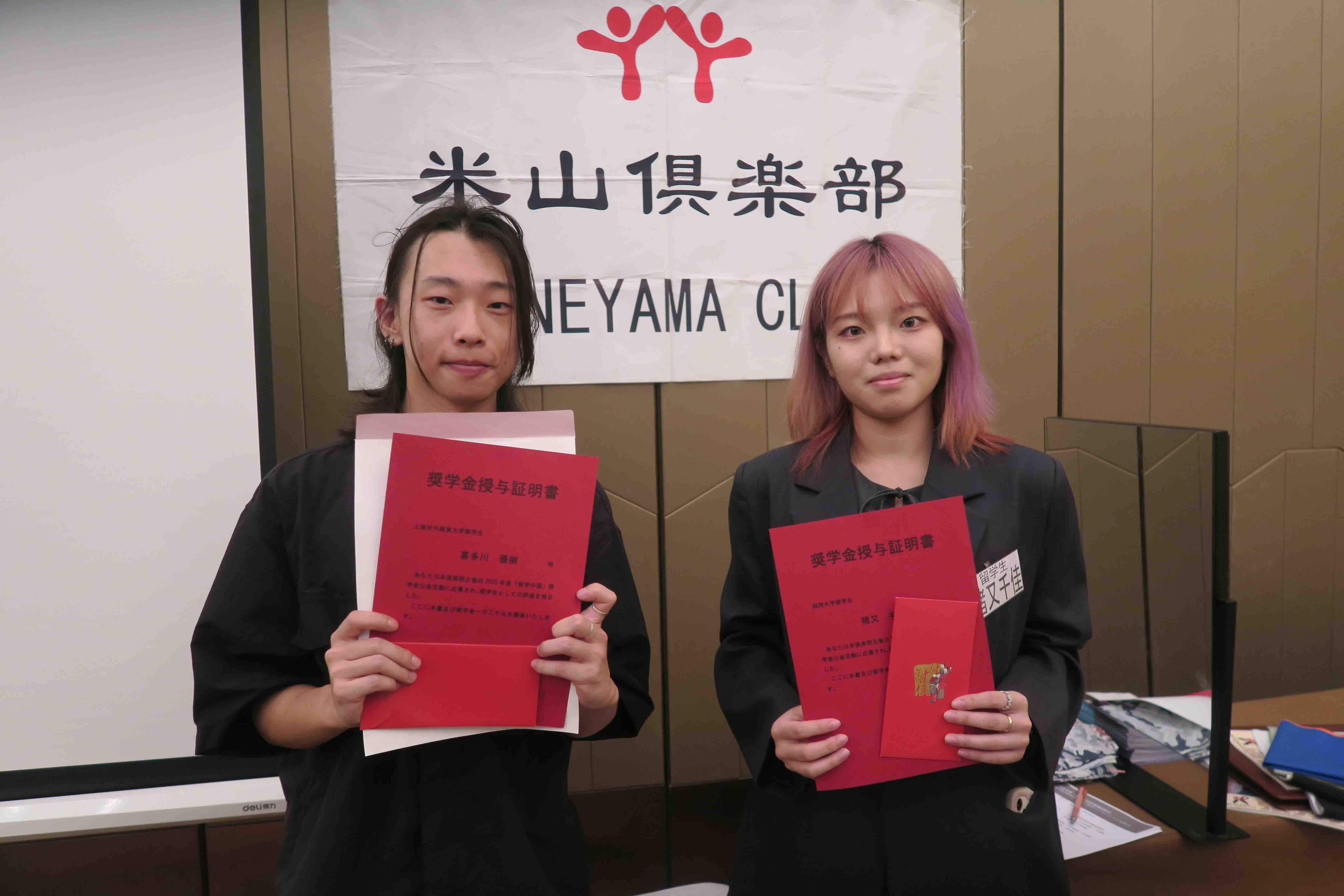 1.18:00-19:00 受付、資料配布と名刺交換、到着順で希望の席に着席 2.19:00-19:30 2025年「留学中国」授奨式 3.19:30-21:30 懇親会と自由交流 4.21:30 閉会 2025年「留学中国」受奨者を発表します。 ①喜多川優樹さん、上海対外経貿大学本科4年生 ②猪又千佳さん、湖南大学本科3年生 |
